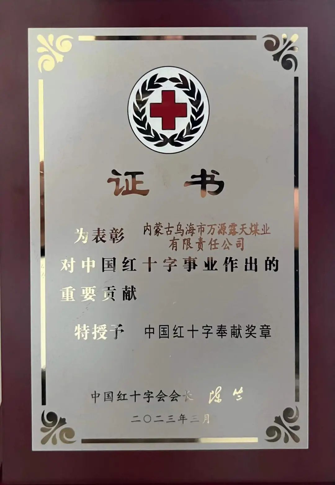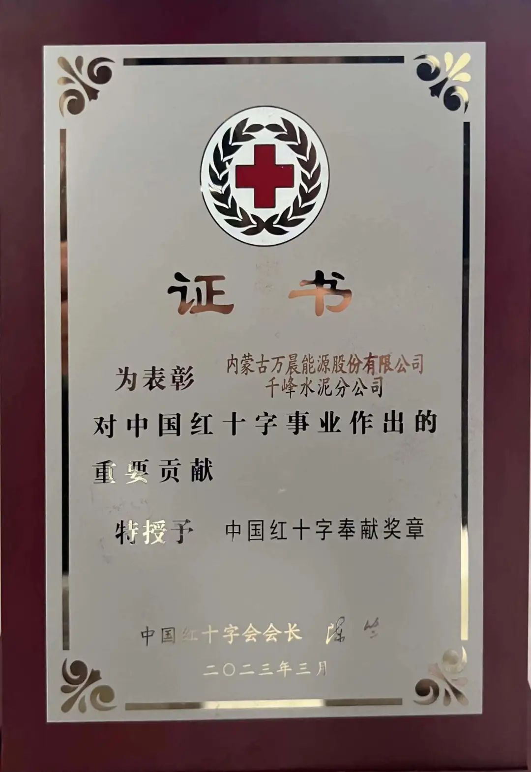 內蒙古黃河集團旗下千峰水泥集團和萬源露天煤業榮獲中國紅十字奉獻獎章