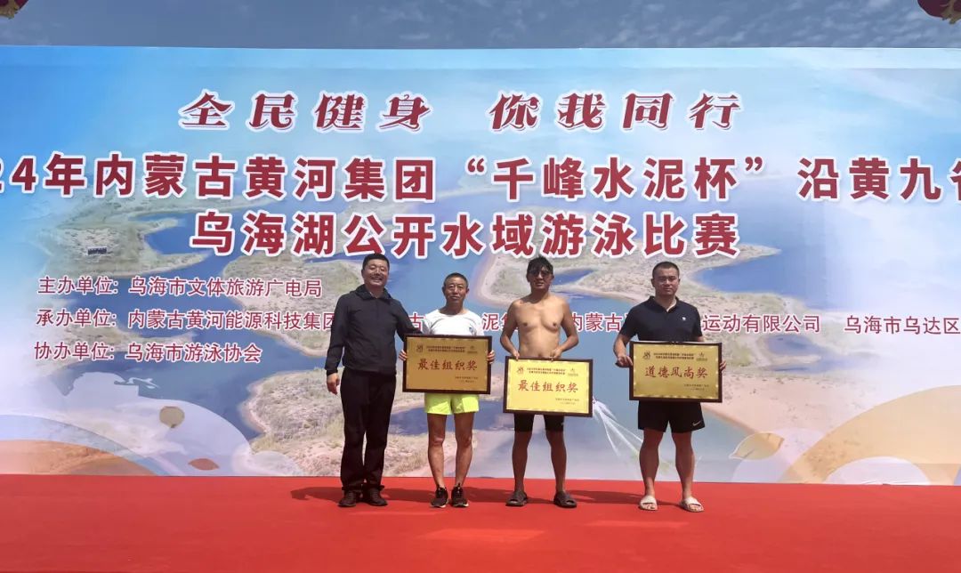 2024年8月3日,由內蒙古黃河集團與旗下內蒙古千峰水泥集團共同承辦的“千峰水泥杯”沿黃九省區烏海湖公開水域游泳比賽,在烏海湖畔圓滿落幕。此次賽事吸引了來自沿黃九省區包括山東、山西、陜西、四川、青海、甘肅、寧夏在內的14支代表隊及個人游泳愛好者近400人參與,共同展現了高水平的競技風采。